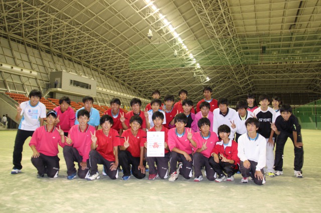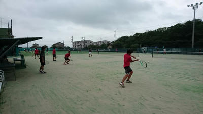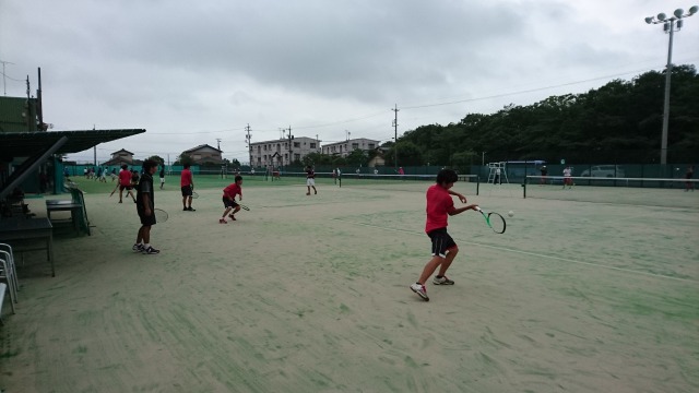 中京大学の学生10名を招き、東海総体、全国総体に出場する54名でウォーミングアップとボレー練習、ストローク練習を行い、その後、ゲーム練習を行いました。