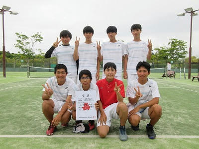 結果は、女子の部は木本高校の大威・奥村ペアがゲームカウント④-1で木本高校の山城・椿本ペアを下し、優勝、男子の部は木本高校の大前・竹内ペアがゲームカウント④-2で木本高校の佐田・福中ペアを下し、優勝しました。